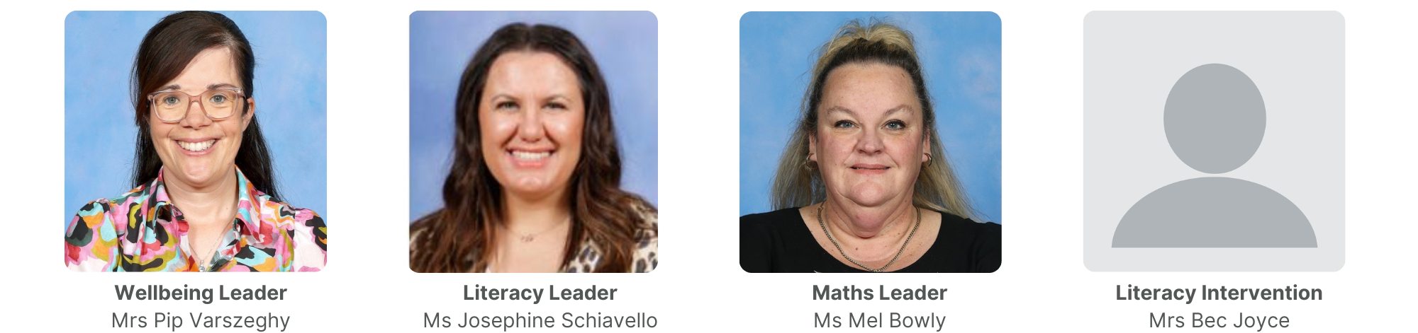 A Principal Team of 3, Leadership Team of 6, Professional Learning Teams at each Year Level, Administration Team, and Education Support Staff are dedicated and committed to building an inclusive and collaborative school culture.